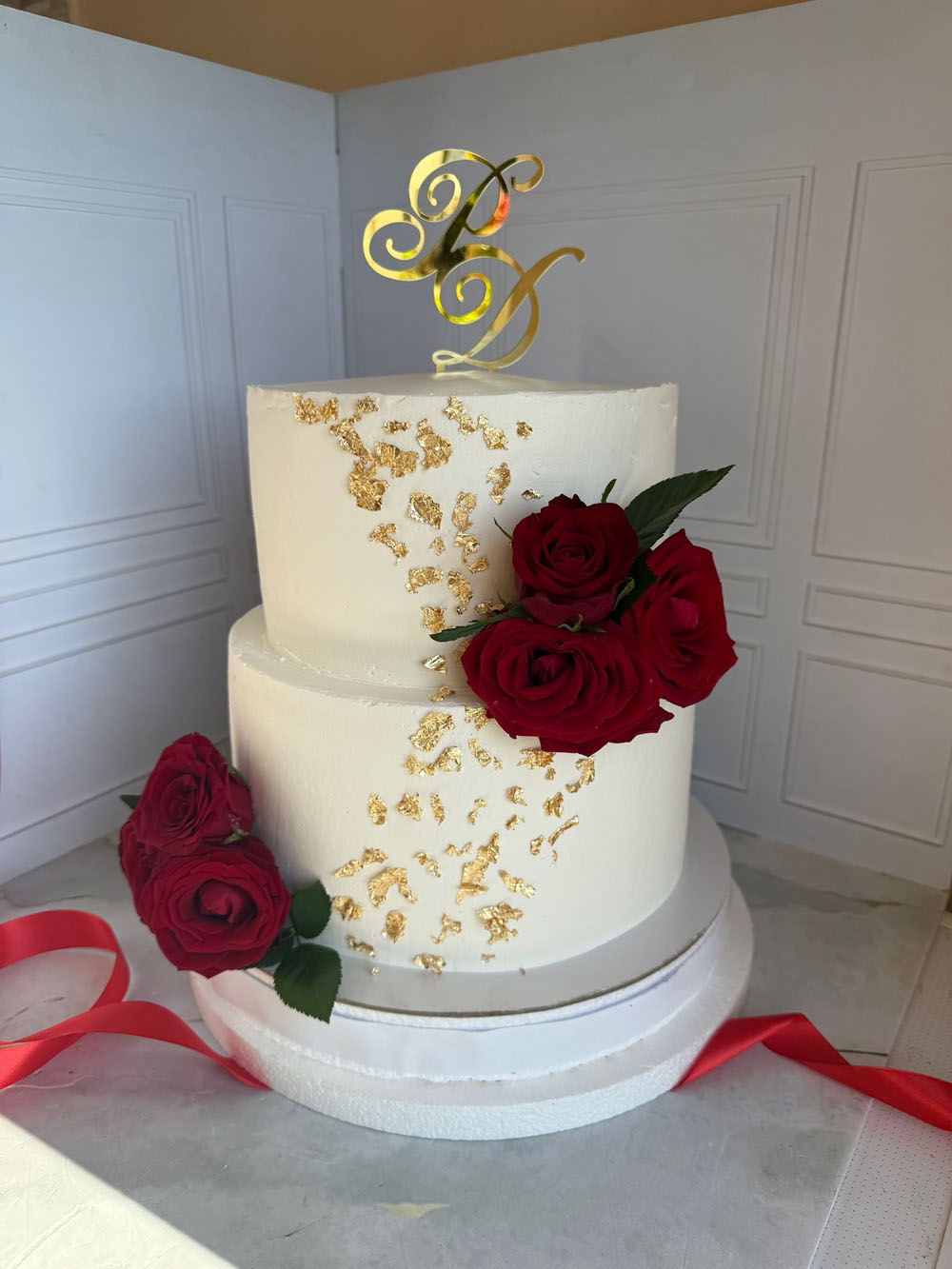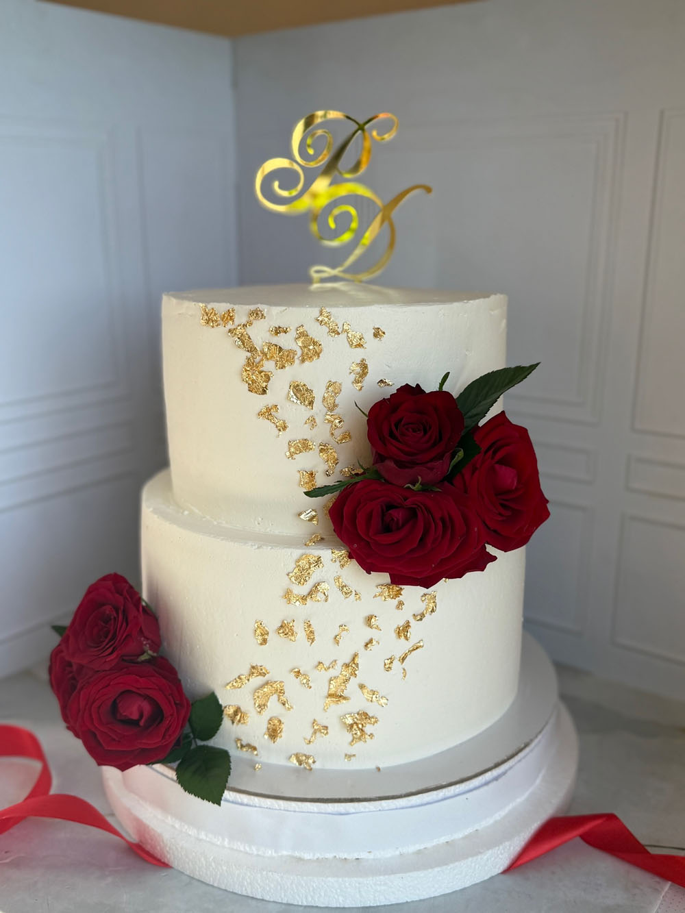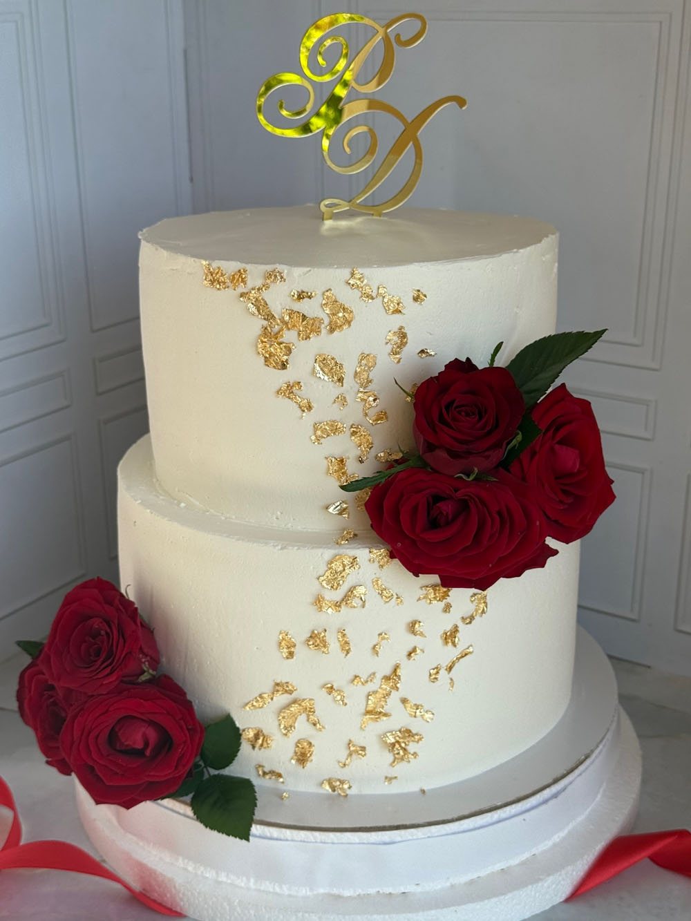 Двухъярусный свадебный торт «Белый сникерс» с живыми розами