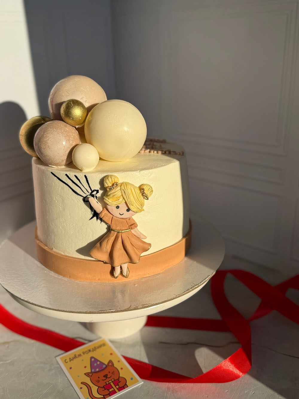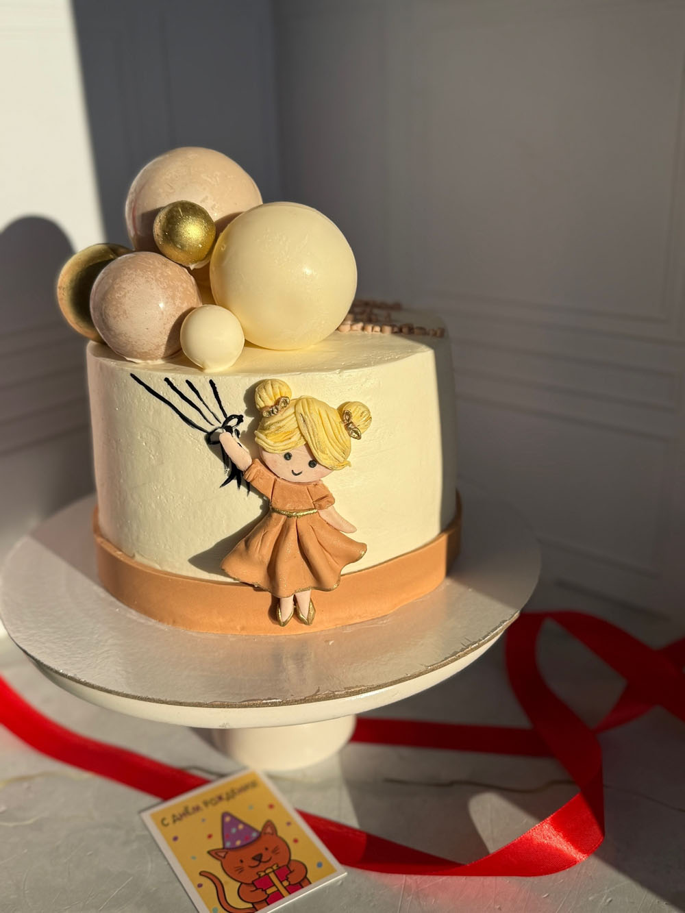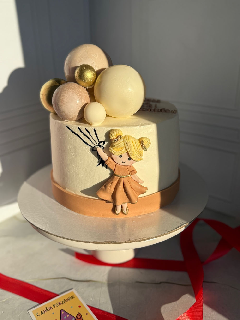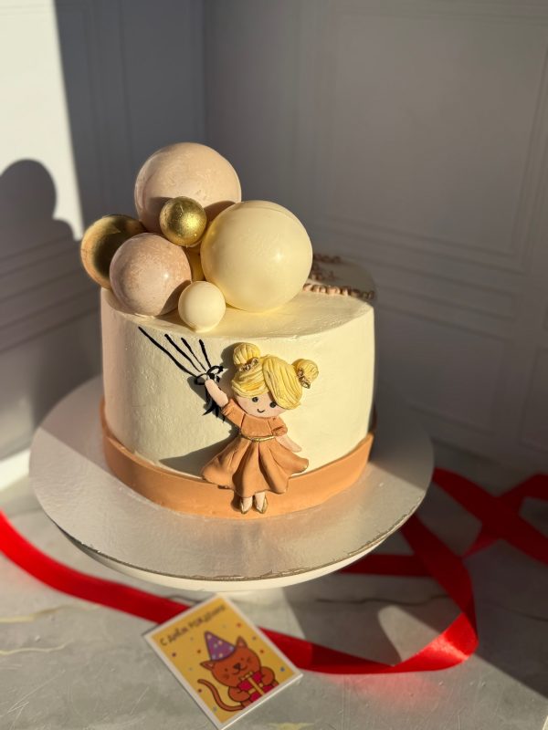 Декор: девочка сделана из мастики. Шоколадные сферы.