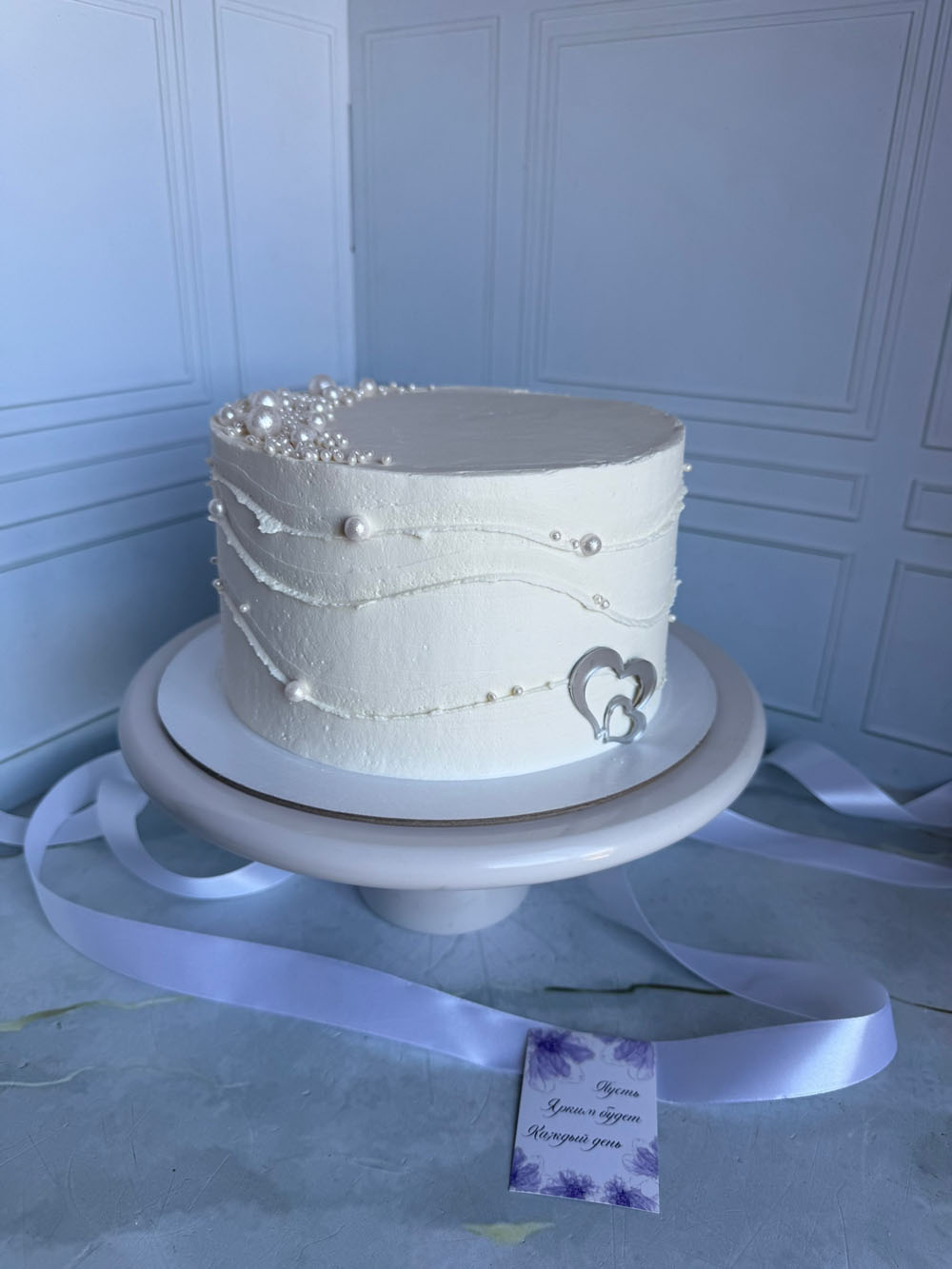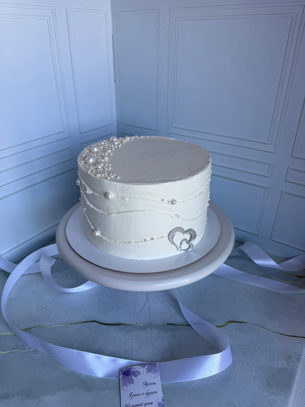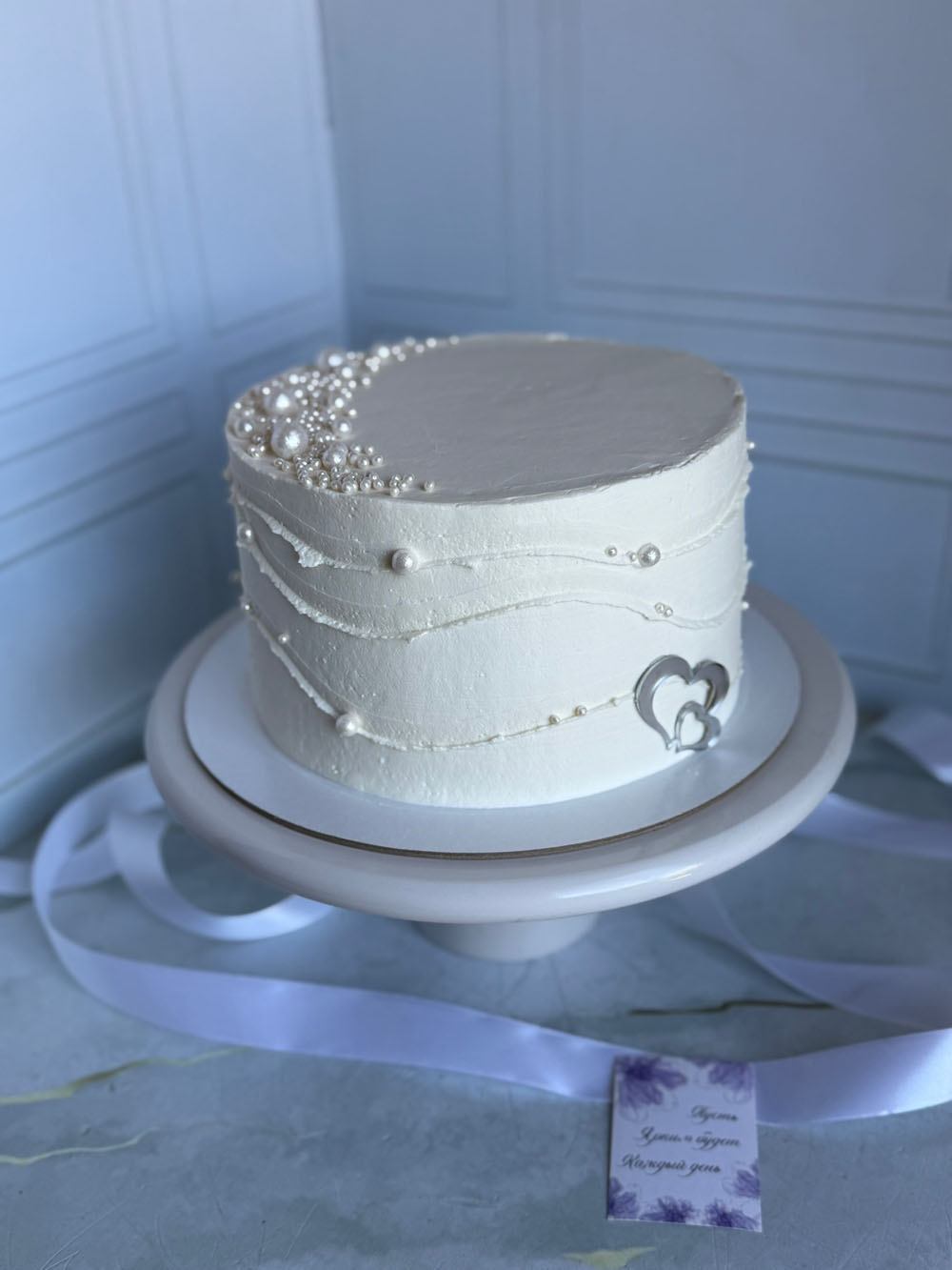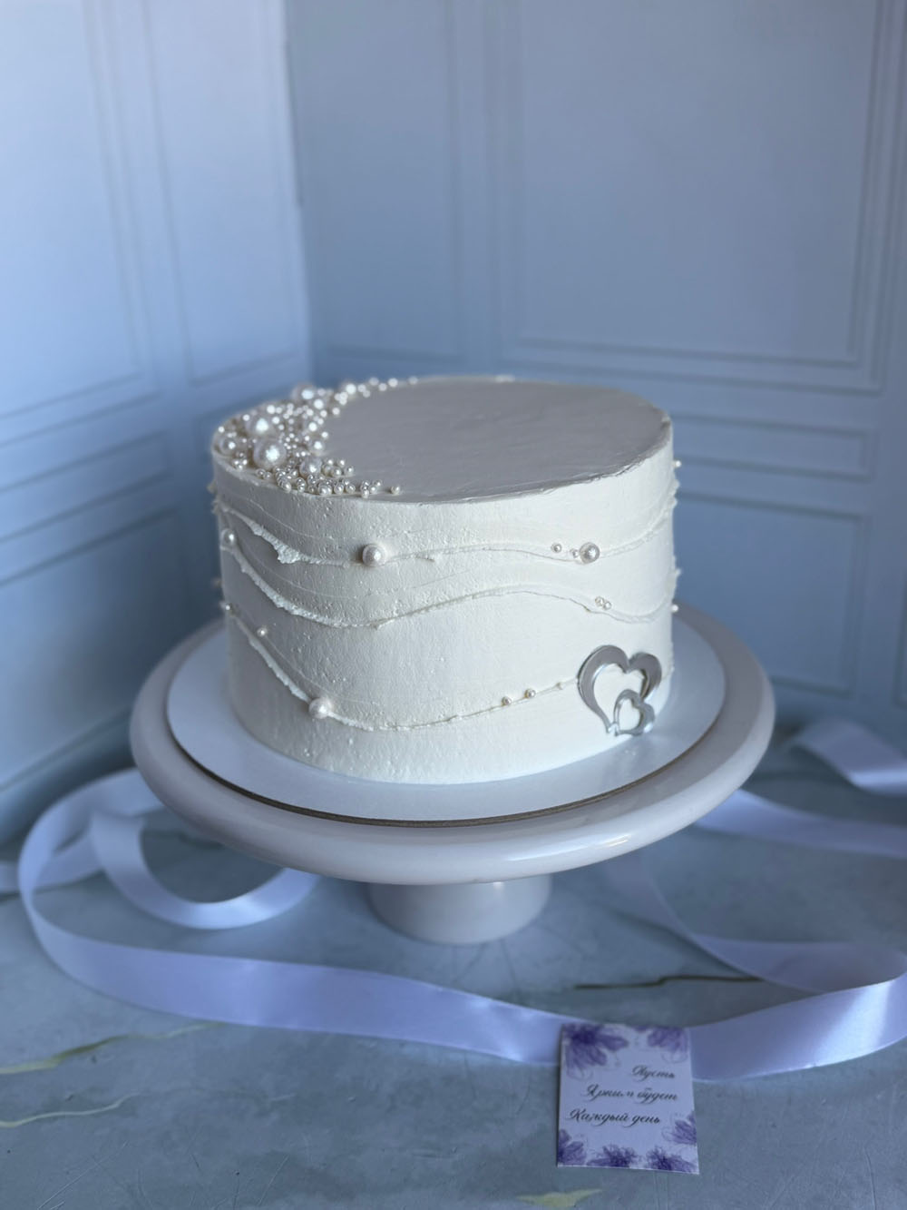 Декор: в минималистичеком стиле, жемчужные бусины и топпер сердца.