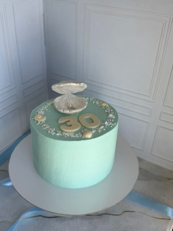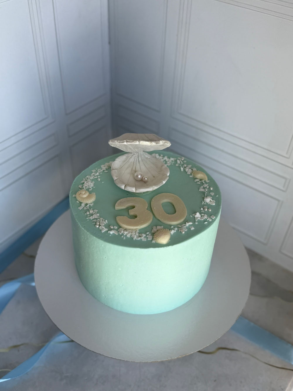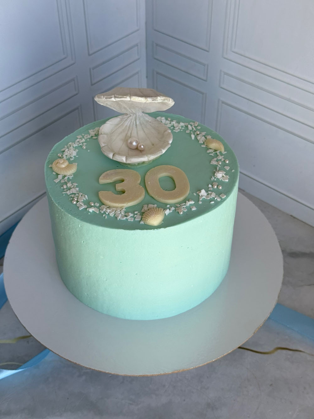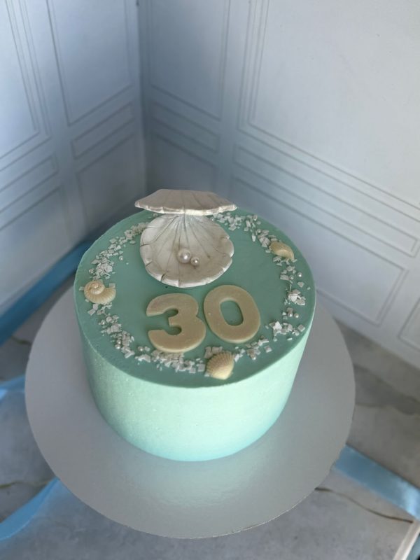 Декор: ракушка с жемчугом- мастика, маленькие из шоколада.