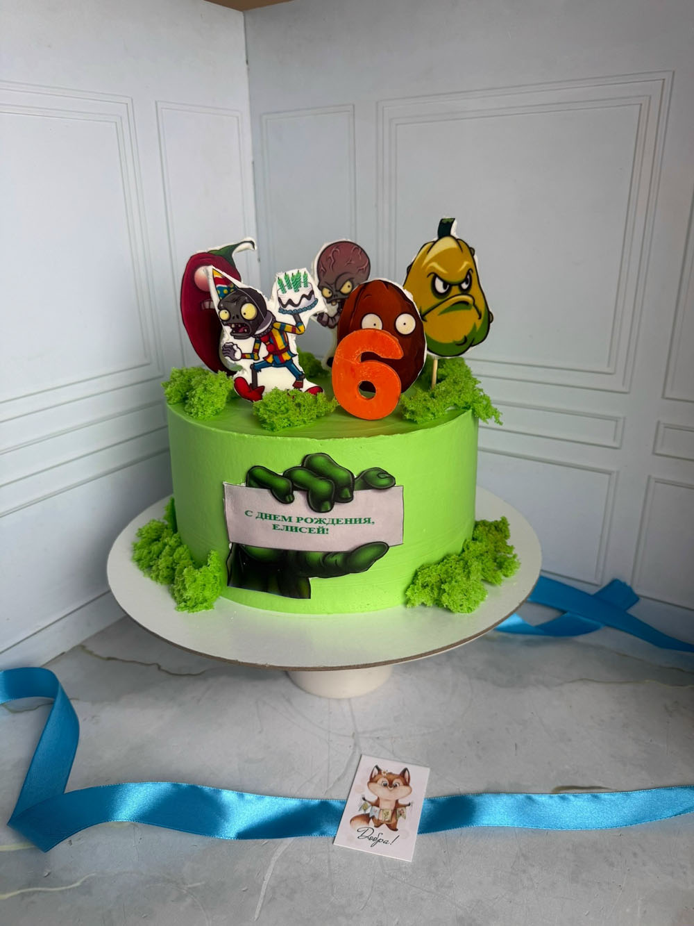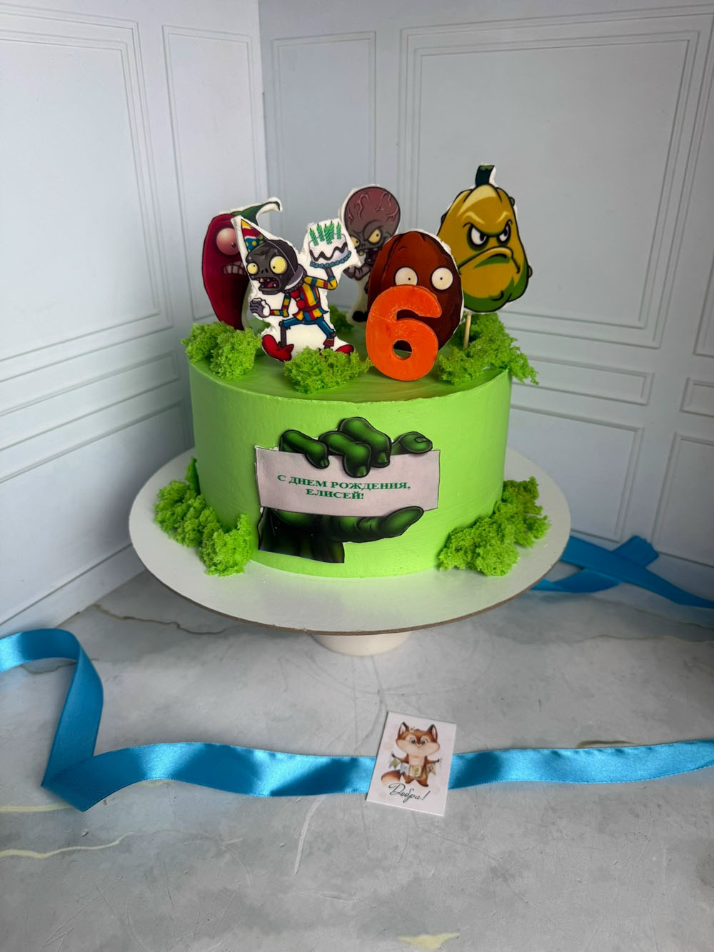 Декор: сахарная печать и съедобный мох.