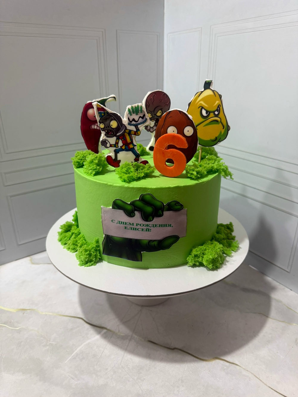 Торт растения против зомби для мальчика с начинкой «Сникерс»